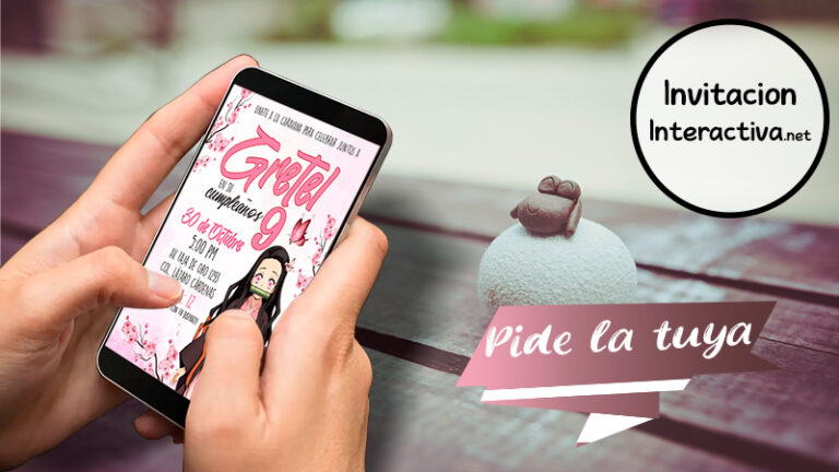 Elaboramos su invitación digital de Nezuko Kamado de la serie Demon Slayer: Kimetsu no Yaiba. Una invitación donde el rosado destaca por características del personaje.